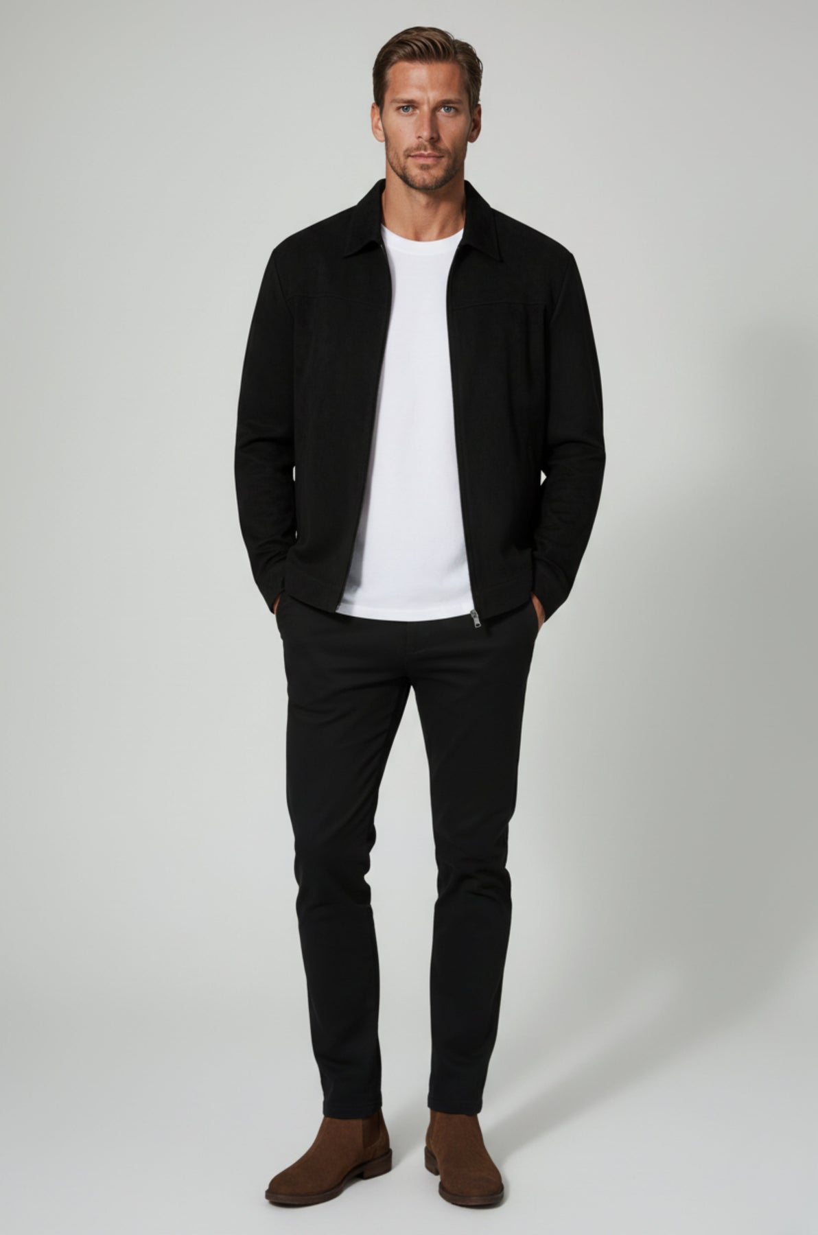 Leder du efter en stilren og alsidig jakke, der kombinerer moderne design med maksimal komfort? Vores sorte ruskindsjakke er designet til mænd, der ønsker et skarpt, minimalistisk look med eksklusive materialer og funktionelle detaljer.