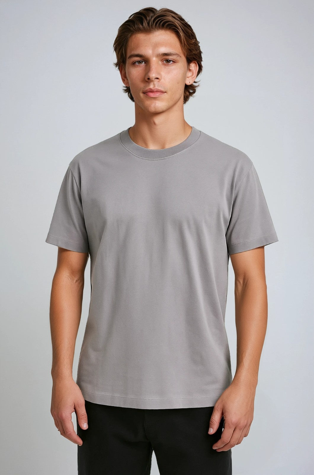 Herre T-shirt i Bomuld – Åndbar Kortærmet Rund Hals – Jerngrå