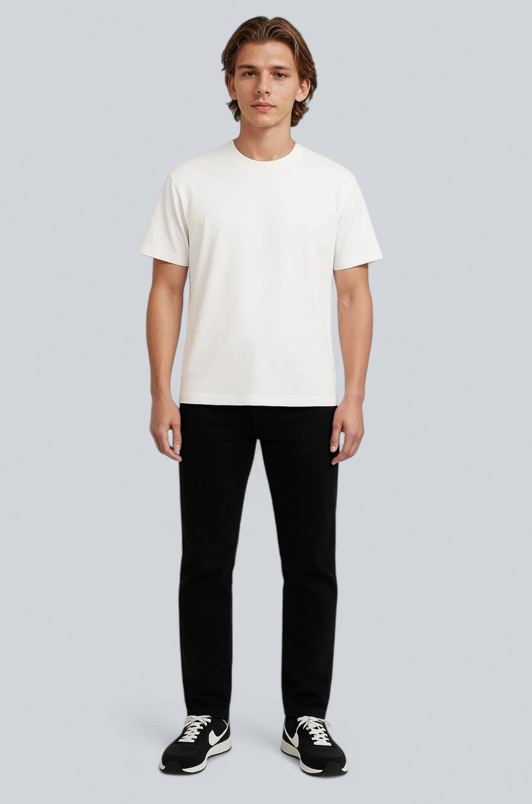 Herre T-shirt i Bomuld – Åndbar Kortærmet Rund Hals – Hvid