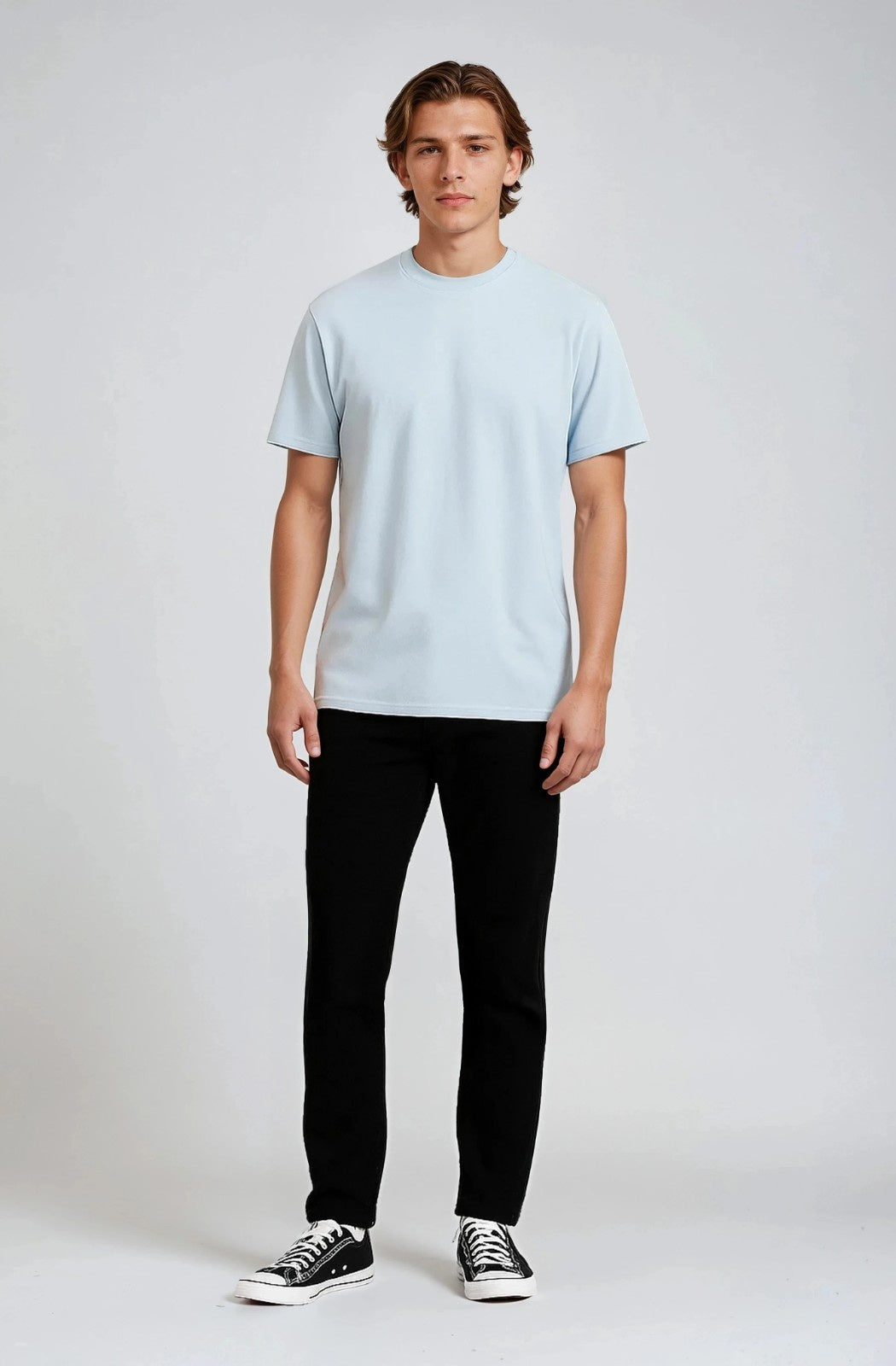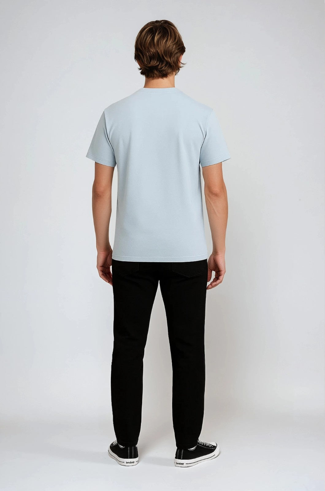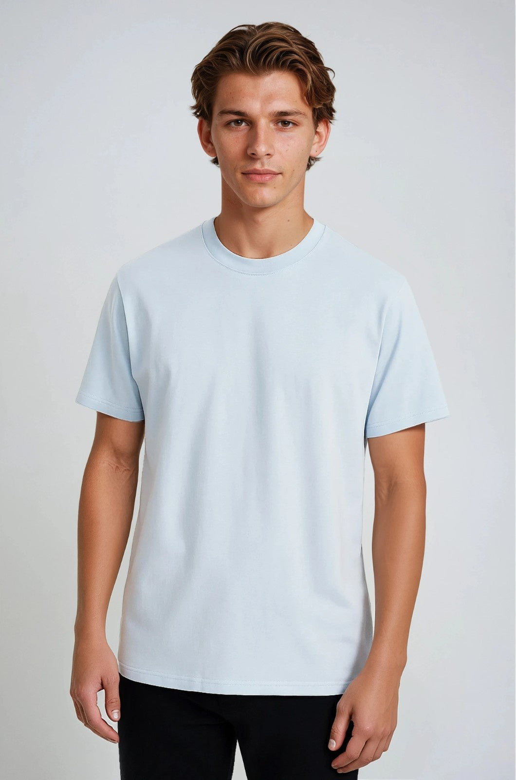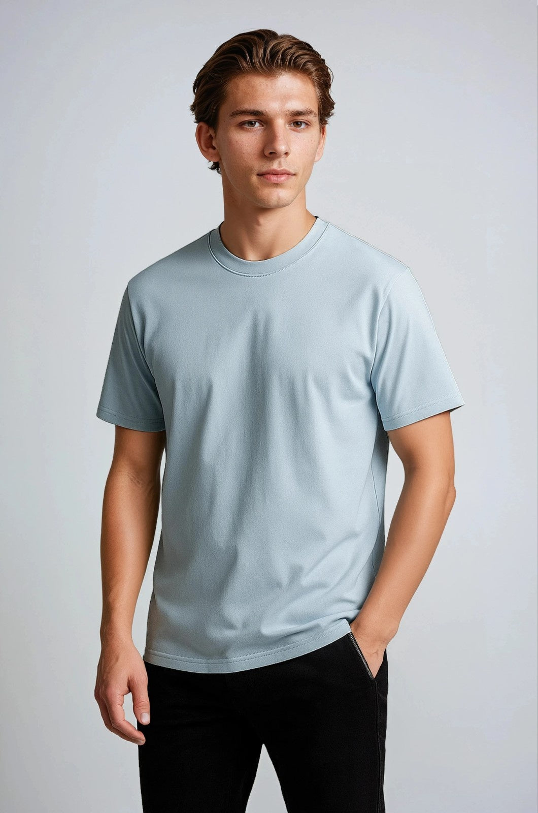 Herre T-shirt i Bomuld – Åndbar Kortærmet Rund Hals – Tågeblå